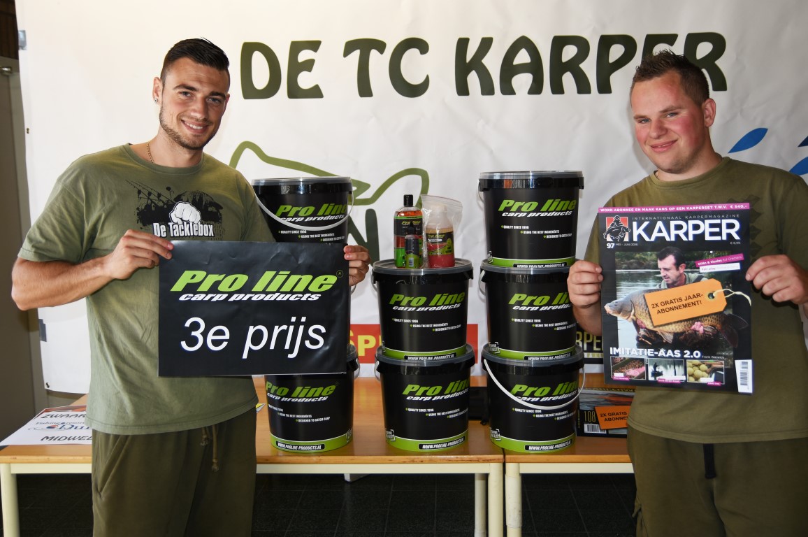 Henri Eshuis en Henk Meppelink met hun Pro Line aaspakket en een jaarabonnement op Karper Magazine.