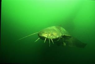 De rest van de dril speelt zich af op het midden van de rivier en het is wachten op het volgende binnenvaartschip. Maar die komt ook niet en na drie kwartier komt de vis voor het eerst boven. Dan zien we pas hoe groot de vis eigenlijk is...de vierde poging laat de vis zich eindelijk pakken. Ik til het beest de boot in en vaar naar de kant. Eenmaal aangekomen bij de pont hebben we veel toeschouwers. Ik weet al dat de vis waarschijnlijk over de 150 gaat maar sta toch te kijken als ik zie hoe eel ik nog tekort kom...
