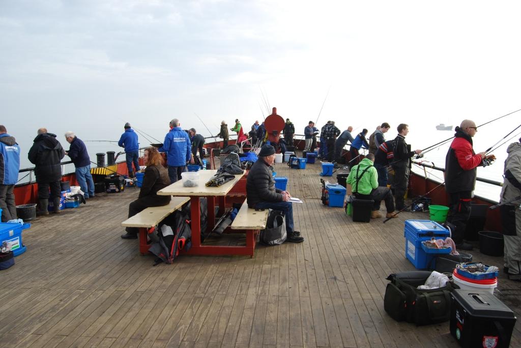 Afgelopen weekend werd de eerste selectie bootvissen gevist op de boot Estrella vanuit de haven van Scheveningen. Na de eerste dag van de selectie bootvissen staat Louis van Bommel met stip op nummer één. Aan stuurboordkant ving hij maar liefst 85 vissen, gevolgd door Ernest Ripson, Sjaak Verburg en Mark van Wanooij. Aan bakboordzijde eindigden Albert Leeuwis en Toon van Bladel samen op de eerste plaats, voor Marco Mol en Piet Buik. Een goede uitgangspositie om zich te plaatsen voor het Nederlands Kampioenschap.