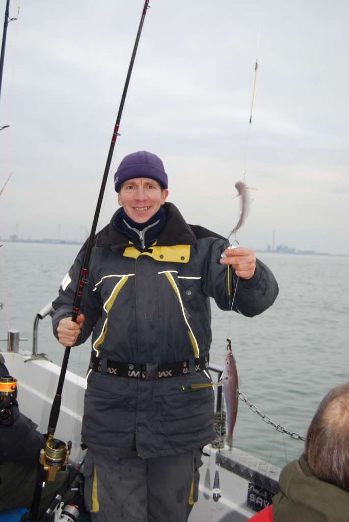 De “Pirate 2” met schipper René de Back aan het roer voer in donkere omstandigheden naar een beproefde stek tegen de “Spijkerplaat” aan en de deelnemers startten om 8.10 uur al met de eerste periode. Terwijl het zachtjesaan licht werd kwamen de eerste vissen al aan boord of vielen net buiten de reling van de haak. Omdat er nog niet zoveel getijdenstroming liep, beet de vis namelijk erg voorzichtig. Pim Troost werd aan bakboordzijde na twee uur vissen de winnaar met 16 vissen voor Mark van Wanrooij en Frank van Schilt. Aan stuurboordkant ving Peter Leentjes 18 vissen, genoeg voor de sectorwinst. Sjaak Verburg en Remco Geuze volgden. Omdat onder andere de algemeen leider van de eerste twee dagen, Rien van Eekeren, nogal wat puntjes had laten liggen, schoof het klassement verder in elkaar. De tweede periode verwachtte iedereen een harde opkomende getijdenstroming maar dat viel toch erg mee. Met een 200 grams ankerlood bleven de lijnen keurig liggen. Maar de zwakke stroming spoorde de vis opnieuw niet aan tot fanatieke aanbeten. De krabben wel! Die hingen soms met bosjes op de beaasde haken. Opnieuw vielen er vissen van de haken bij het binnen tillen. En Pim Troost liet zien, dat hij snode plannen had. Met 14 vissen won hij weer de bakboordkant, voor Mark van Wanrooij en Angelo Hensen. Aan de ander kant van de boot pakte Remco Geuze de winst voor Sjaak Verburg en Peter Leentjes. Rien van Eekeren en Frank van Schilt lieten ook nu weer kostbare punten liggen. Sjaak Verburg sloop dichterbij in het totaalklassement.