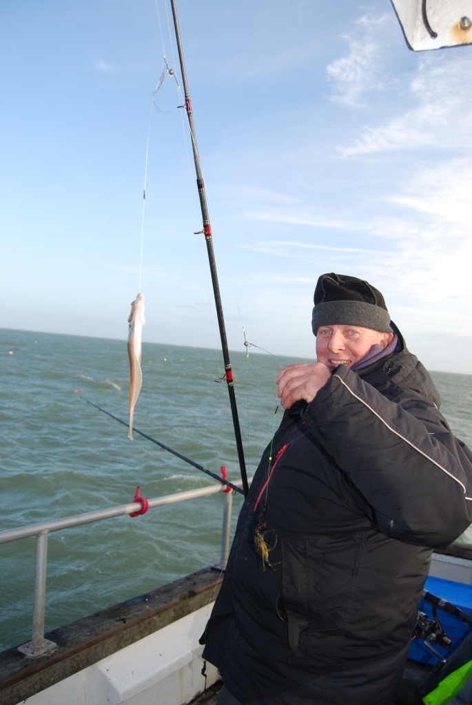 De eerste periode startte in het halfdonker met de al eerder geschetste slechte weersomstandigheden. Maar al snel werden de eerste visjes gevangen aan de door Eddy op den Brouw van hengelsport Oosterschelde geleverde zeepieren, zagers en mesheften. Albert Leeuwis opende zelfs met een doublet. Het werd een spannende periode, want de vangsten van de deelnemers ontliepen elkaar niet veel. Het was Louis van Bommel die met de winst aan de haal ging aan bakboordkant, voor Albert Leeuwis en Angelo Hense. Aan de andere kant van de boot won Sjaak Verburg, voor Pim Troost en Arjan Stelwage. De vangsten waren in de eerste periode dermate teruggelopen, dat schipper Ludo het voor het vervolg van de wedstrijd raadzaam achtte om de boot te verleggen naar wat dieper water.