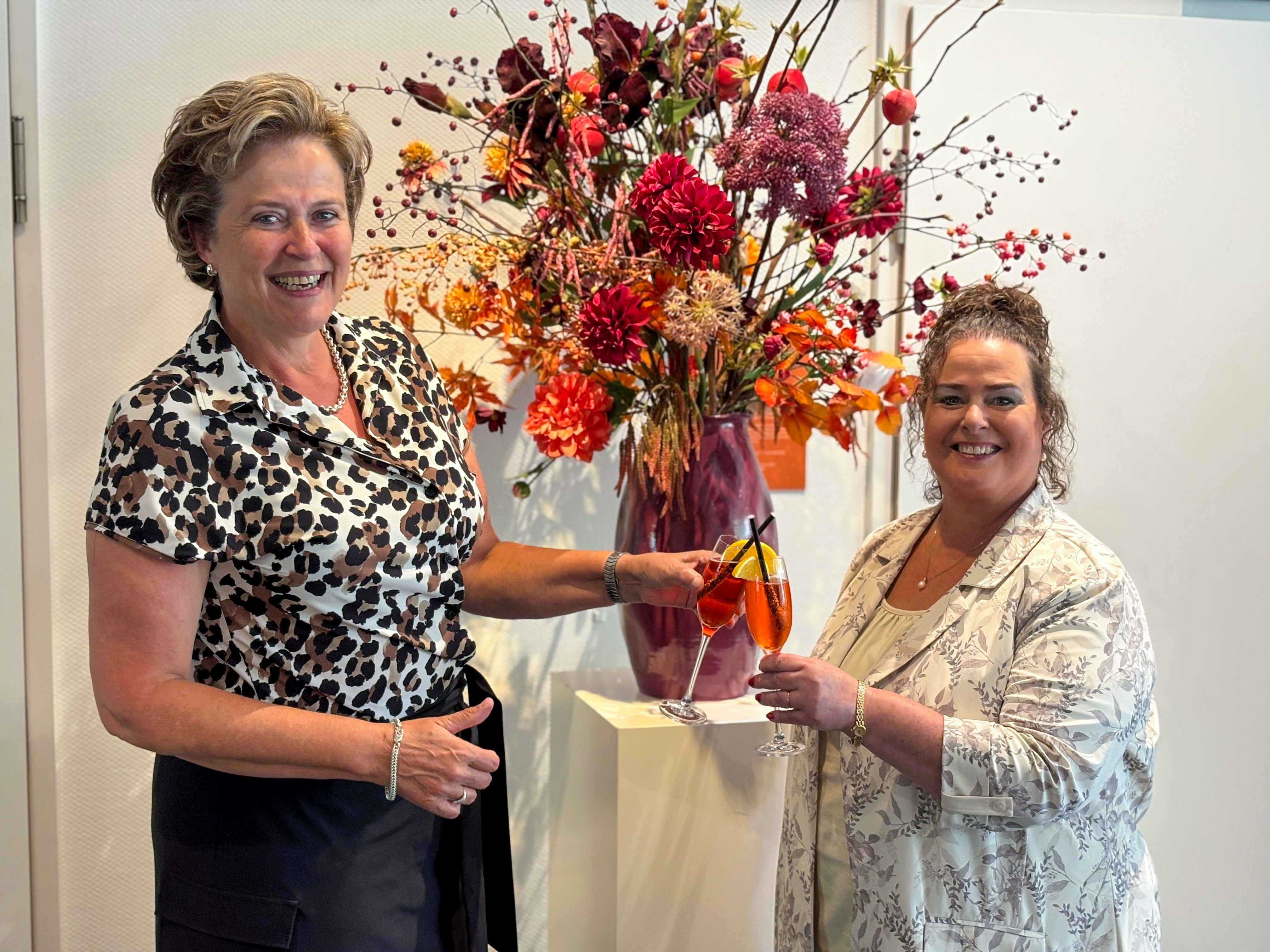 Voorzitter Marjan van Kampen (links) en directeur Rosetta Kooistra van Sportvisserij Nederland heffen samen het glas op de toekomst.