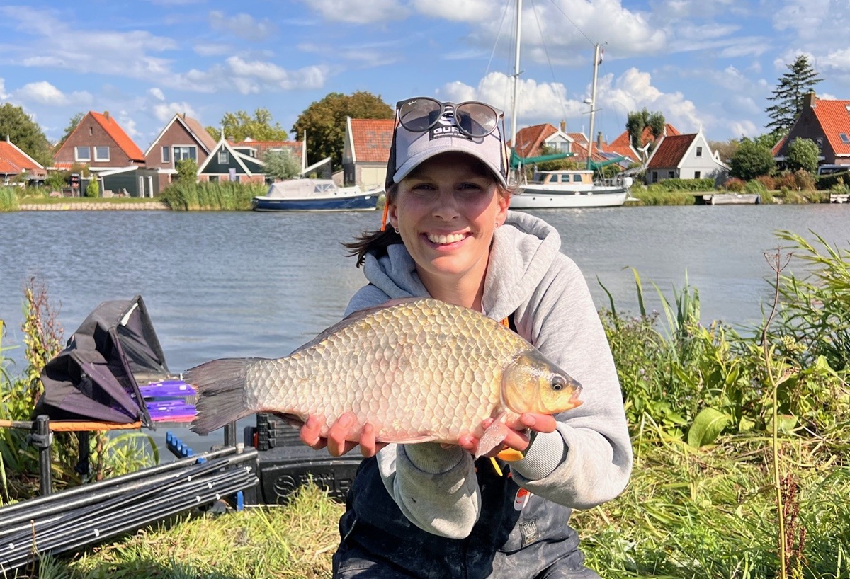 Anja onthult dat ze een tapijtje van voer en leem had gevoerd met centraal daar overheen een gecupte mix van aas en leem. Vissend met een ‘sleepje’ dat zo’n vijf centimeter op de bodem lag, wist ze langzaam maar zeker de beet erin te krijgen. De vangst bestond hoofdzakelijk uit brasem met daarnaast een mooie zeelt en giebel als bonusvissen. “Dat ik ook veel vals gehaakte vissen kwijtraakte, was enerzijds frustrerend maar bewees tegelijkertijd dat mijn voermanier werkte.”