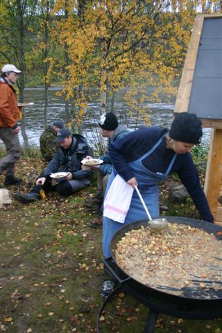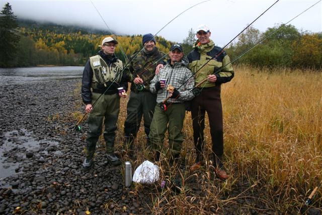 Zo begeleiden ze ons als volleerd visgids langs de Kläralven, een bekende zalm- en forelrivier. Er wordt uitgebreid ingegaan op de finesses van het vliegvissen, welke vissen er te vangen zijn, waar we op moeten letten en welke plekken de meeste potentie hebben. Na een ochtend intensief oefenen onder de vakkundige begeleiding van de visgids en de leraren die hen