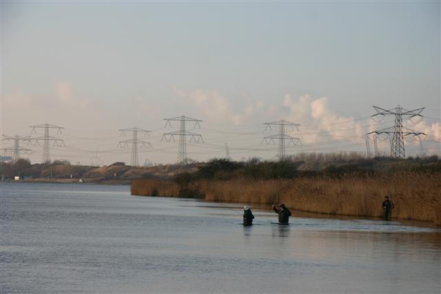 Ook in de winter liggen de beste stekken achter en tussen de stenen damwanden. Een waadpak is noodzakelijk, vergeet vooral niet warme onderkleding aan te trekken.