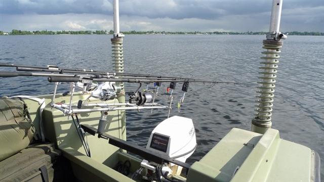 De hengels staan in custom made rodpots op het achterdek.