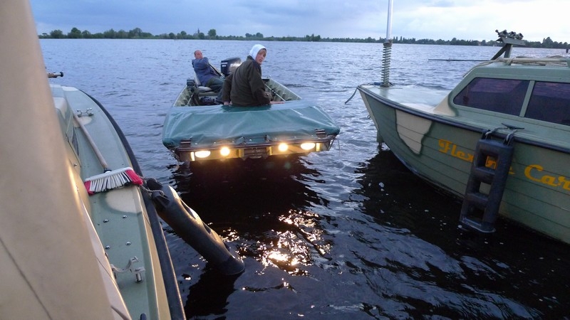Na de dril wordt de hengel weer helemaal tiptop in orde gemaakt en de rig uitgevaren waarna de drilboot tussen beide kajuitboten wordt geparkeerd.