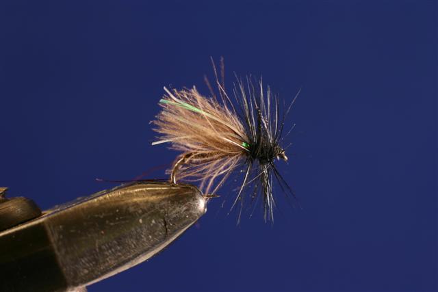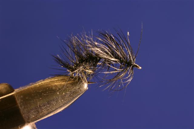 Haak 14. Wordt op dezelfde manier gevist als de zwarte palmer en de zwarte kever.