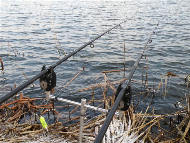 Uiteraard zijn er speciale doodaashengels te koop, maar met een standaard karperset kun je ook prima uit de voeten. Hengels, molens, steunen, beetverklikkers; alles is hetzelfde – alleen verruil je de boilie voor een dode aasvis. Die laatste kun je natuurlijk zelf vangen, maar je kan ook op de markt zeevis als sardine en makreel inslaan. Die kun je mooi invriezen zodat je altijd een voorraad dood aas bij de hand hebt. Veel succes deze winter!