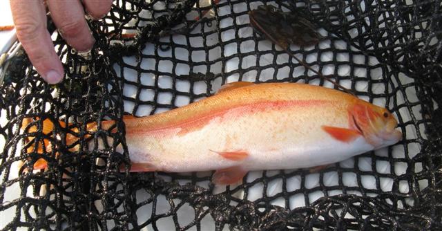 Op het Oostvoornse Meer zwemt deze goudforel sinds november samen met zijn broertje, en 2500 eveneens uitgezette regenboogforellen, rond. Degene die deze vis weet te vangen en daarvan een foto opstuurt naar info@sportvisserijbelangen ontvangt van Sportvisserij Zuidwest Nederland een prachtig verguld beeldje van een forel en 100 euro!