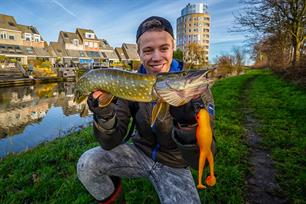 Bijna alle deelnemers zijn een half uur geleden al vertrokken uit de kantine van het zwembad van Breezand als Nick op zondagochtend rond 09.30 arriveert bij de verzamelplaats. “Vorst en gladheid zorgden voor forse vertraging”, zegt de Velpenaar terwijl hij zijn kikkers in ontvangst neemt van Evert Oostdam, de man achter Pike Master Lures en organisator van deze bijzondere roofviswedstrijd. Hij heeft gekozen voor de Orange Tiger in de 17.5 cm uitvoering. “Die felle kleur kunnen de snoeken echt niet over het hoofd zien”, lacht Nick terwijl hij de kikker op een 7-grams jigkop schroeft en met een speld de dreg (maat 1/0) in de onderkant van de kikker prikt. “Er zijn nu weinig waterplanten meer, dus dat kan prima.”