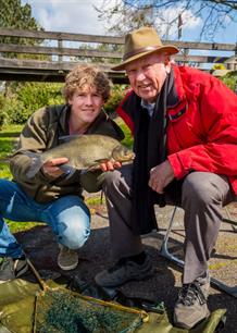 Daniël Weijers leerde in zijn jeugd vissen met de glasvezelhengel die nog van zijn opa is geweest. Aangezien opa Jan (82) al een hele tijd niet meer had gevist, nam kleinzoon zijn grootvader mee uit vissen. Aan de waterkant bleek dat senior het vissen nog altijd niet is verleerd.