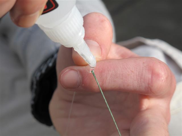 Zo lees je deze maand in de Vuurdoop, dat die Stop Glue gewoon prima werkt. De twee aan elkaar gelijmde lijnen zijn met de blote handen van Ed en Marco (toch vrij stevige kerels) niet uit elkaar te trekken en het product werkt boven verwachting. Hieronder nog wat extra fototips, die vanwege ruimtegebrek het magazine niet hebben gehaald. Gelukkig krijgen ze nu dan nog een plekje op Hét Visblad Online en mogen ze uiteindelijk alsnog niet klagen, die foto's!