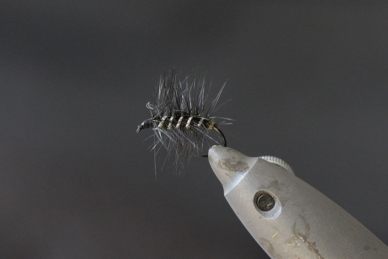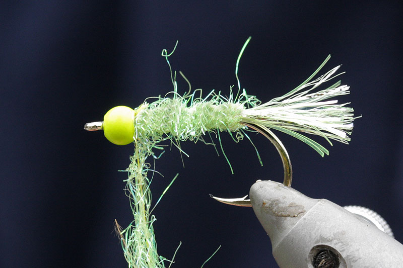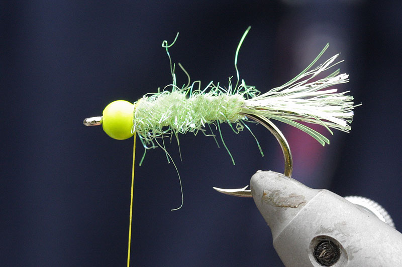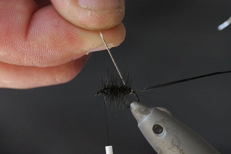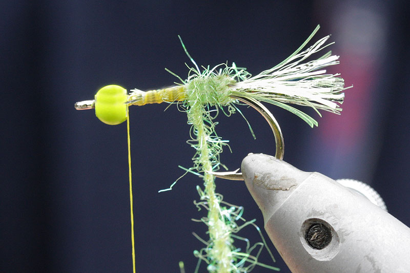 5. Twist wat spectra dubbing op je draad en wikkel hier het lijfje van.