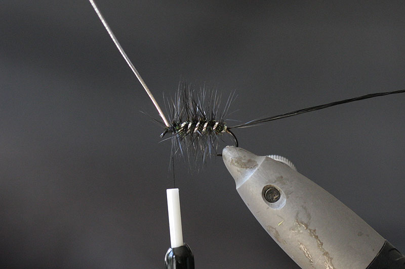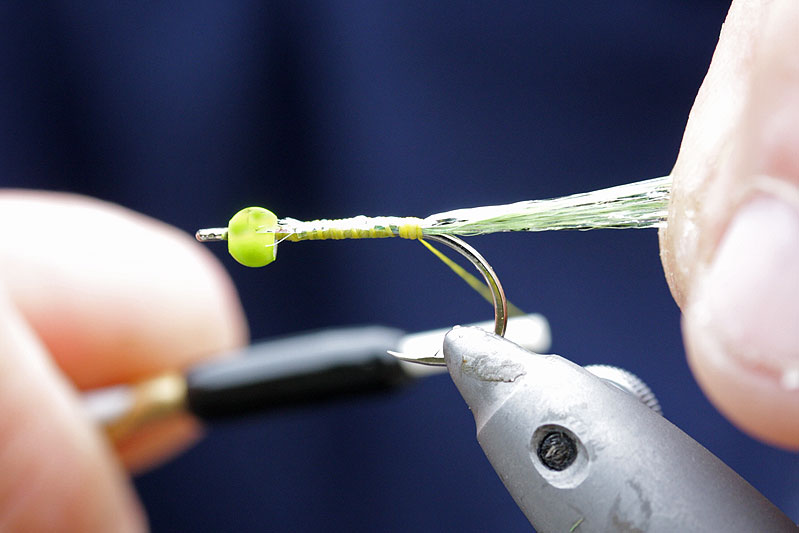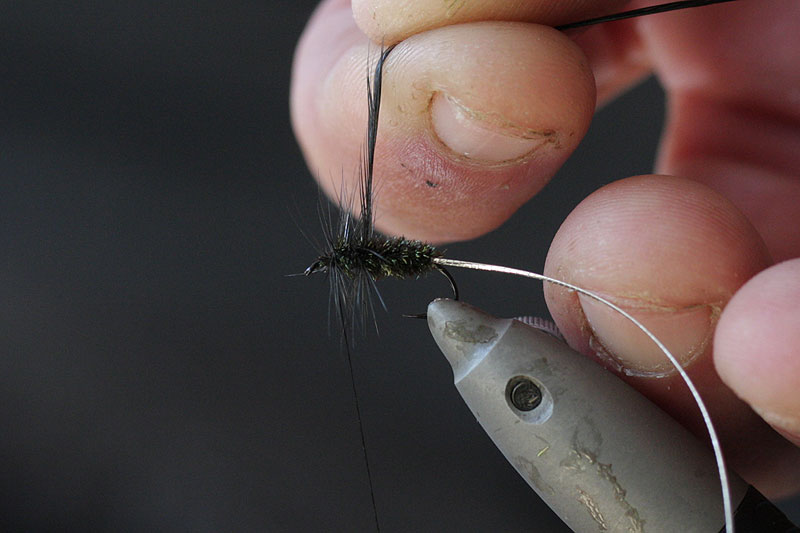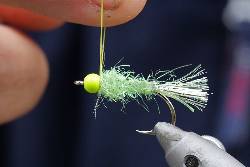 7. Bind nog wat spectra dubbing iets losser op de draad.