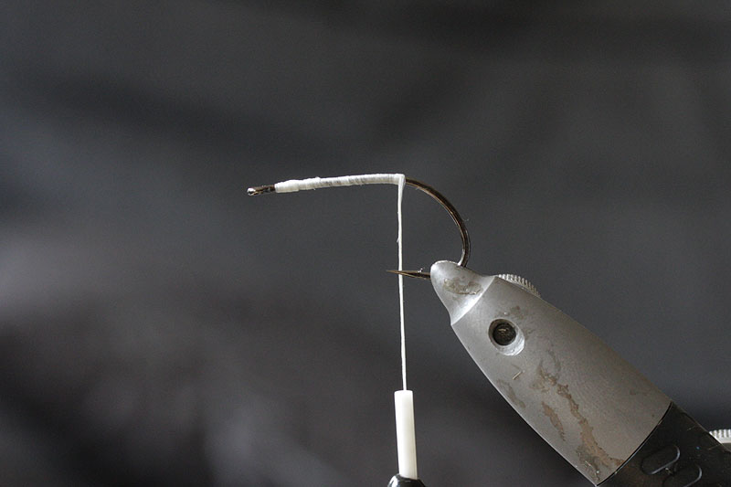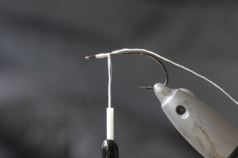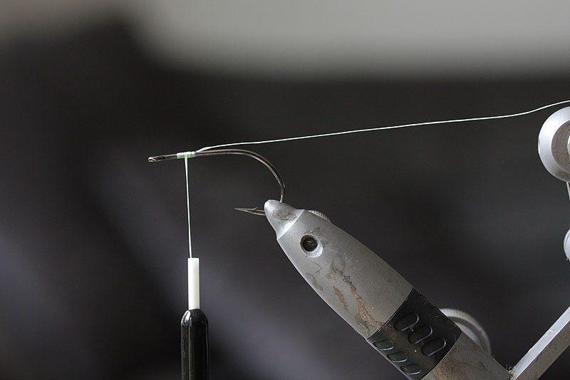 1. Zet een haak Gamakatsu F314 in de vice en zet de binddraad op.