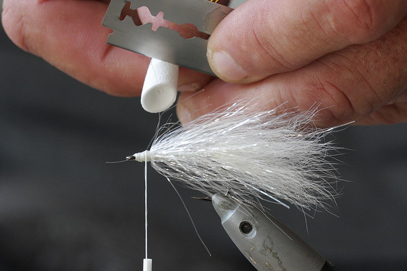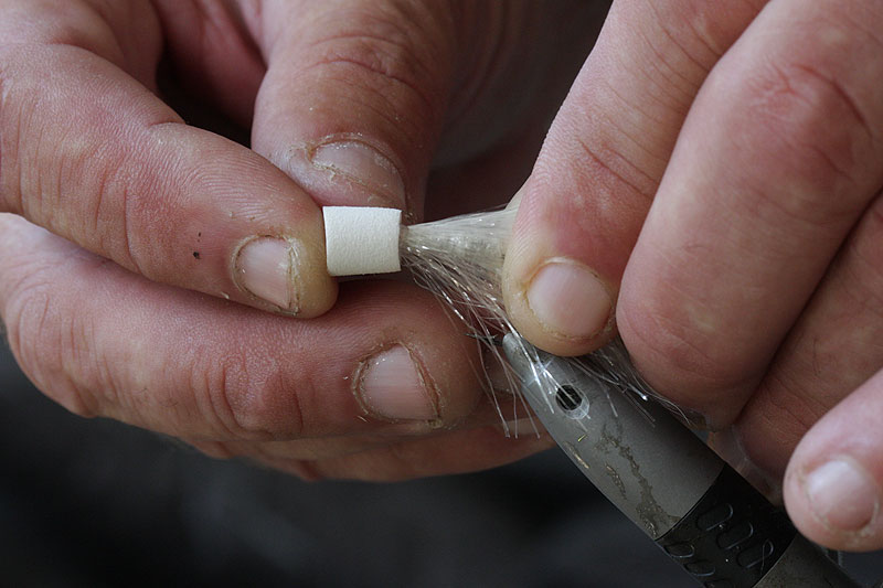 9. Neem foam van een popper (te koop in vliegviszaken) en snijd hier een stukje van af.