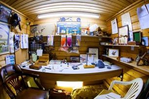 “In het begin viel het nog wel mee met de rotzooi”, zegt vliegvisser Richard Lagerweij. “Maar naarmate ik in de loop der jaren fanatieker werd en meer spullen verzamelde, werd het steeds erger.” De druppel die de spreekwoordelijke emmer deed overlopen, was waarschijnlijk het moment dat Richard fanatiek begon te binden met hertenhaar. “Dat spul draai je om de haak, waarna het helemaal bol kom te staan. Daarna knip je het in de vorm die je wilt hebben. Daarbij vliegt het haar alle kanten op en komt het werkelijk overal terecht. Zit het in een vloerkleed, dan krijg je het er ook niet meer uit.” Om niet met een koffietafel omgeven door troep en een – terecht – boze echtgenote komen te zitten, moest hij op zoek naar een alternatief.
