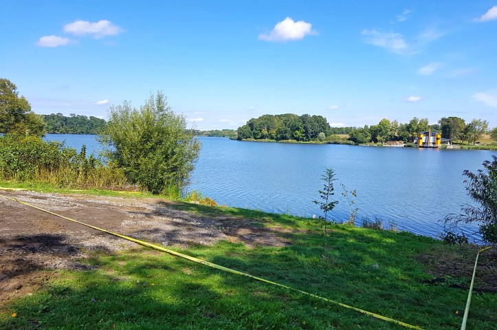 Het Deseda meer, gefotografeerd vanuit de lucht en vanaf één van de WK stekken.