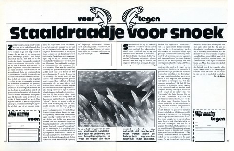Na te openen met een artikel over de ijsvogel, wordt op pagina 10 en 11 direct om de mening van de visser gevraagd. Het vissen met een staaldraadje op snoek staat ter discussie, iets wat vandaag de dag nauwelijks is voor te stellen. De lezer heeft de mogelijkheid om ‘voor’ of ‘tegen’ te stemmen en mag die keuze tevens onderbouwen met een opmerking. In de jaren die volgden groeide Beet als magazine met haar tijd mee.