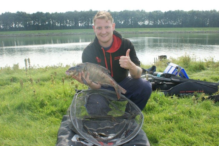 Afgelopen zaterdag is Gerrit de Jongh winnaar geworden van het Open Nationaal Kampioenschap Feedervissen. Aan het Amsterdam-Rijnkanaal bij Tiel ving hij bijna 8,5 kilo vis en daarmee bleef hij de concurrentie ruim voor. Dat er niet zoveel gevangen werd had niet zozeer met talent binnen het deelnemersveld te maken, maar te meer met de vis die zich amper liet zien. Laat staan vangen.