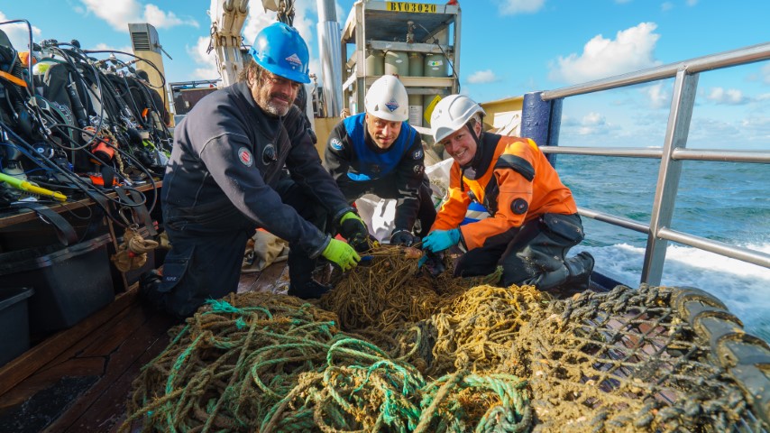 Bij de actie werd maar liefst 2.500 kilo aan verloren visnetten uit zee verwijderd.