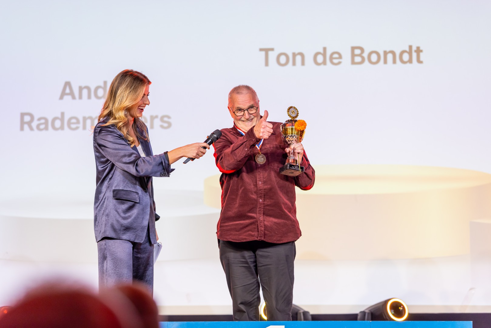 Ton de Bondt werd als eerste winnaar van het Open NK Dobbervissen Lichamelijke Beperking speciaal in het zonnetje gezet. “Een geweldig initiatief”, sprak De Bondt de zaal toe. “Ik hoop dat volgend jaar nog meer mensen met een lichamelijke beperking meedoen.”