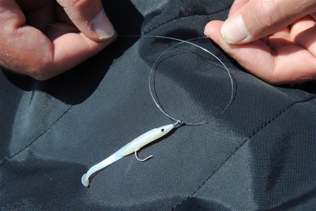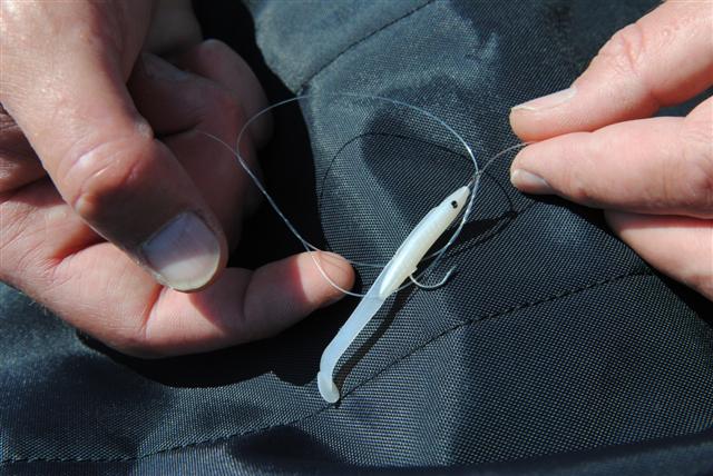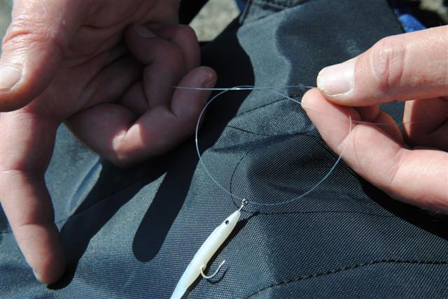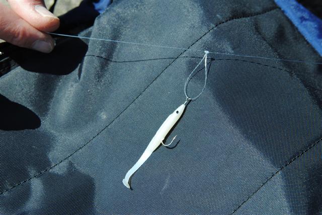 Trek de knoop tenslotte met beleid strak. Het deltavisje staat nu mooi haaks op de onderlijn en vormt een stukje boven de pilker een extra attractie die de zoute rovers maar moeilijk links kunnen laten liggen.