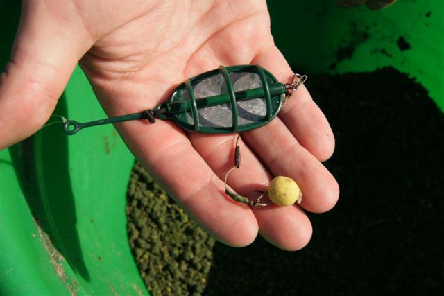 Je kunt eindeloos variëren met je onderlijnen, maar dit is en blijft een goede basis: 4 tot 6 centimter 10 ponds gevlochten onderlijn en een klauwhaakje maat 8 of 10. De Kobra Method Feeder houdt de voermix goed vast.