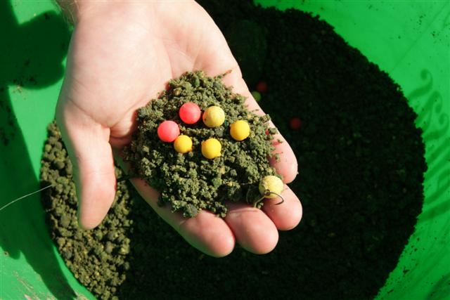 Om de grotere vissen te selecteren vis je bij voorkeur met miniboilies van 6 tot 10 mm. Geel blijkt telkens weer een goede keuze waarbij de smaak pineapple de favoriet van de auteur is. Druk elke keer dat je de feeder vult een stuk of vijf miniblies in het voer.