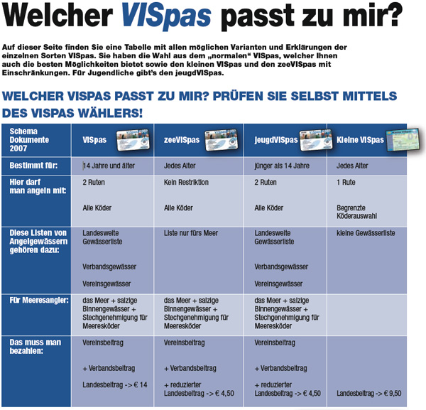 Welcher VISpas passt zu mir? Prüfen Sie selbst - anhand der Angelgewässerliste und Ihrer persönlichen Daten - welches Dokument am besten für Sie geeignet ist: